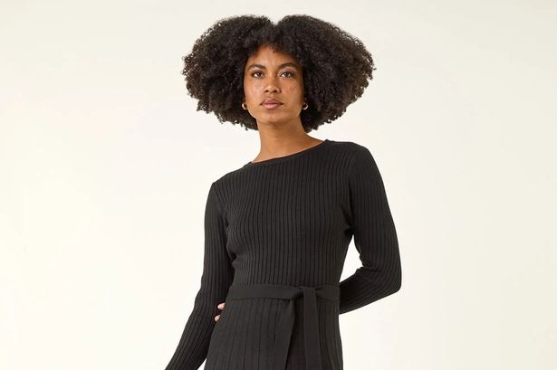 For those seeking alternatives, similar styles can be found at other retailers. For instance, New Look offers a Black A-Line Knitted Midi Dress, now reduced from £34.99 to £20.99. This dress also features a ribbed knit and a sleek, slim-fitting shape. Another option is the Knitted Crew Neck Midi Column Dress from Marks and Spencer, priced at £38. This dress has a round neckline and a loose fit, with a bold border print at the cuffs and hem.